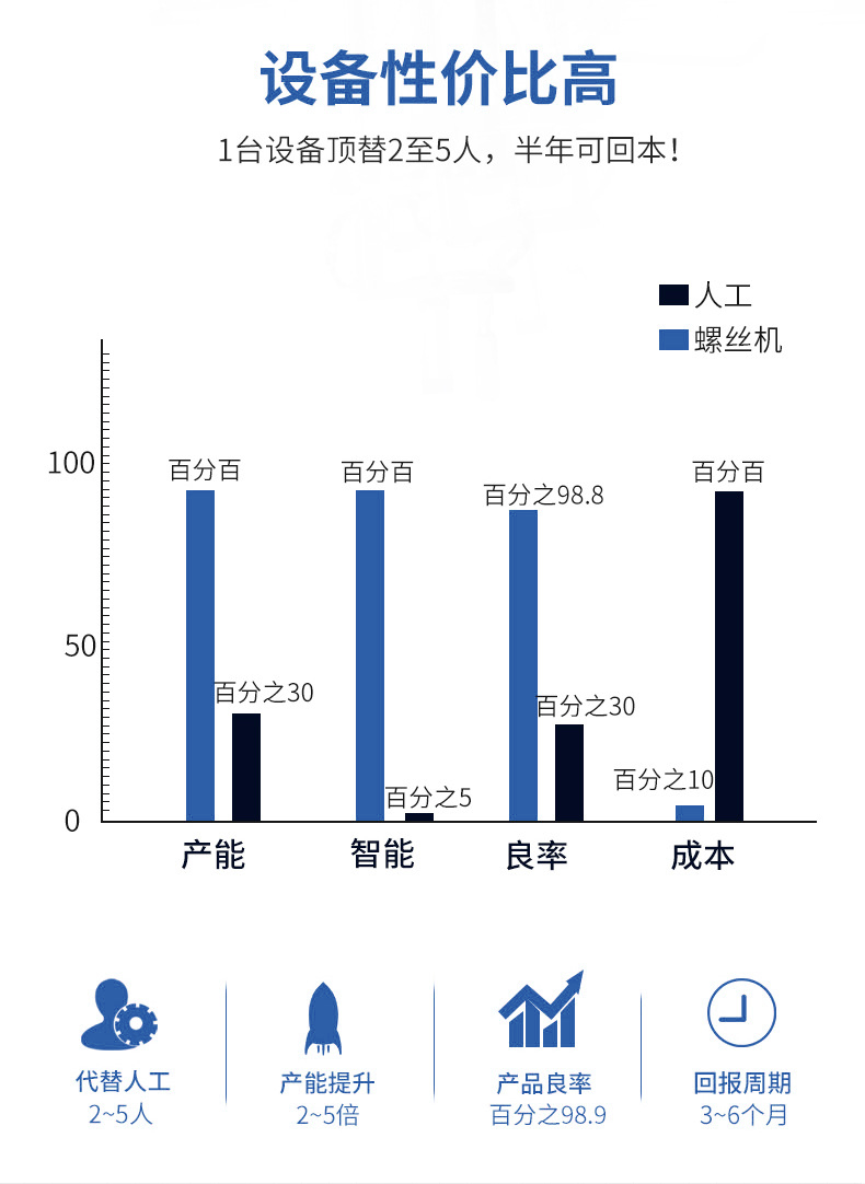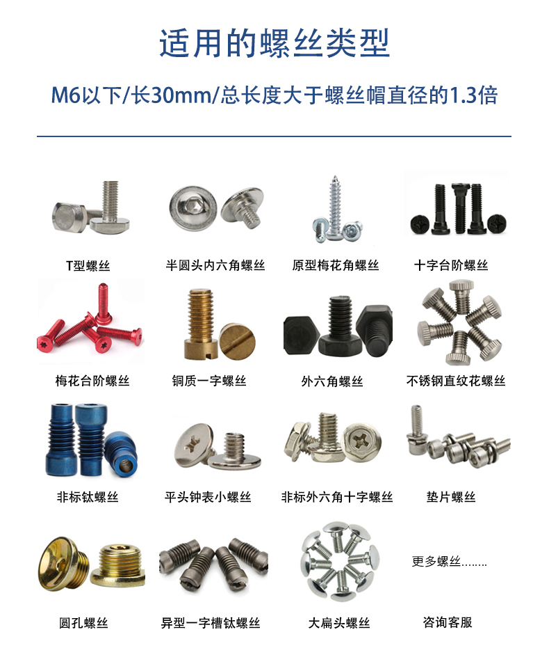 1 螺絲自動整理、供料、自動篩選異型螺絲自動補給空料,效率快。